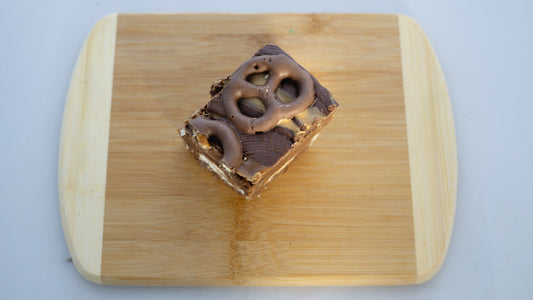 We only use Jiff Peanut Butter in our fudge. Whether it's cooked into the fudge to create our peanut butter fudge base flavor or we're swirling it in straight out of the jar, its rich flavor is a perfect match for our fudge.