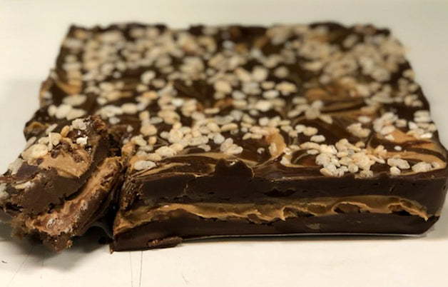 Wha-Cha-Say-It is just as crazy as it sounds. A chocolate fudge on the top and bottom with caramel, peanut butter, and Rice Krispies for that crunch!