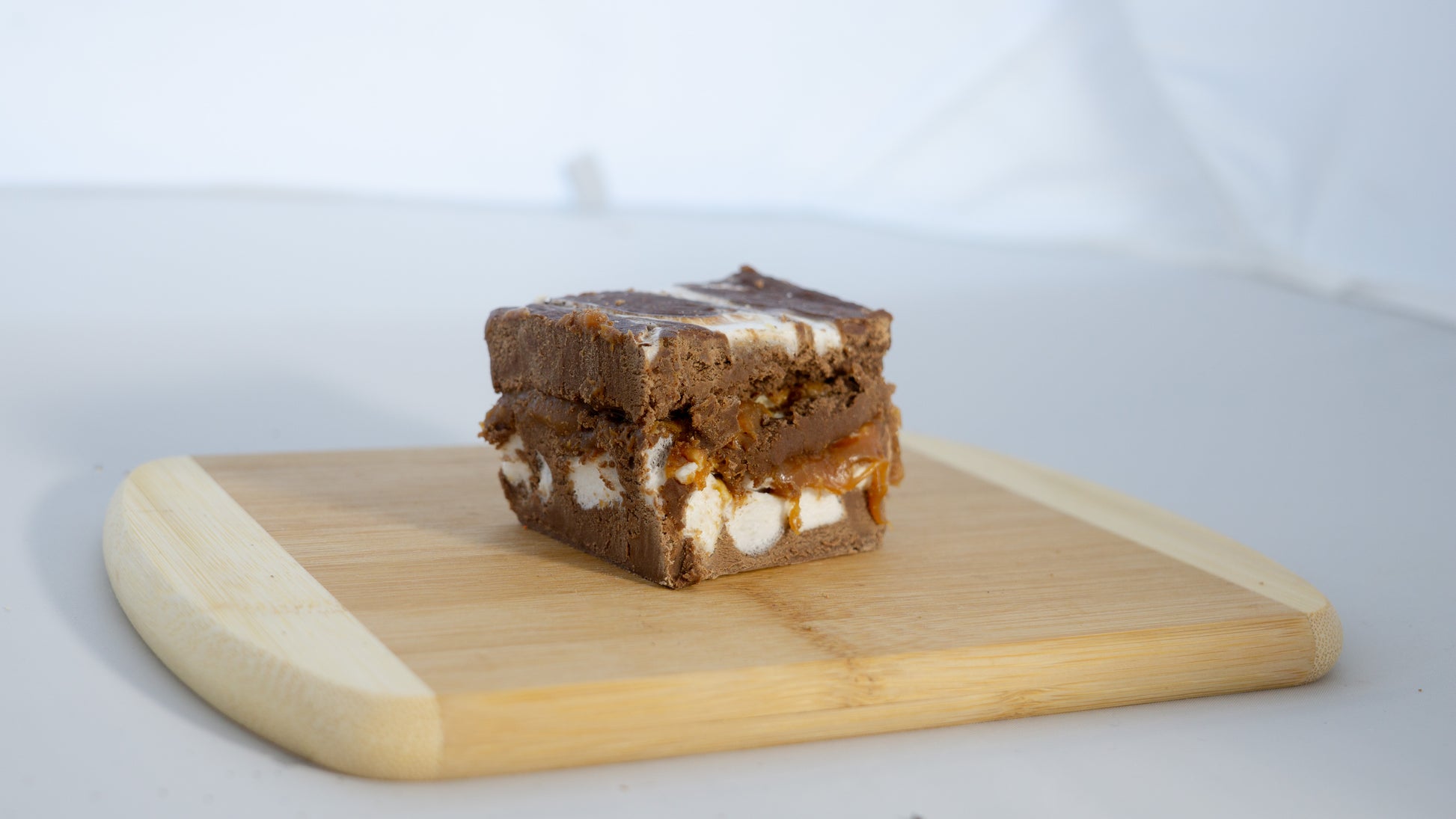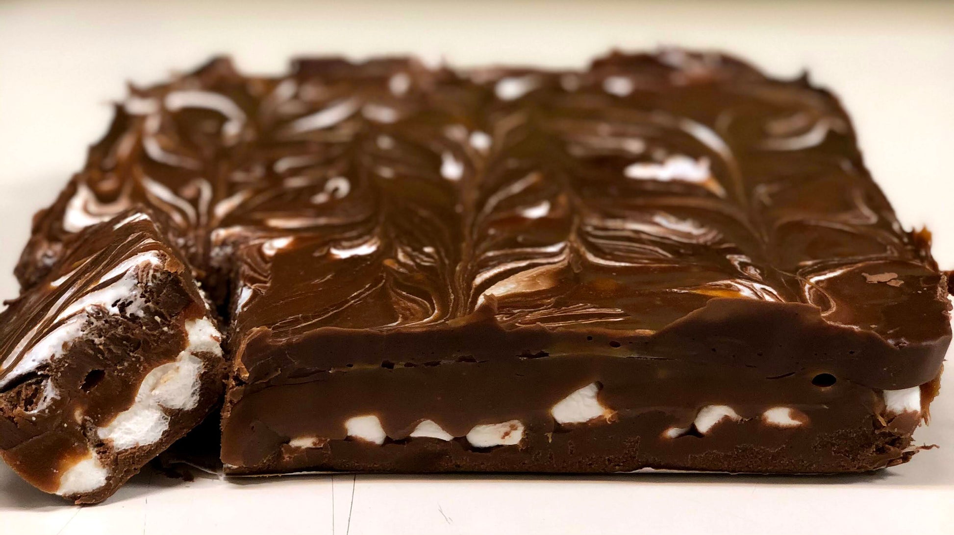 Caramel, mini marshmallows, and marshmallow fluff added to our almost world famous chocolate fudge is an awesome combination.