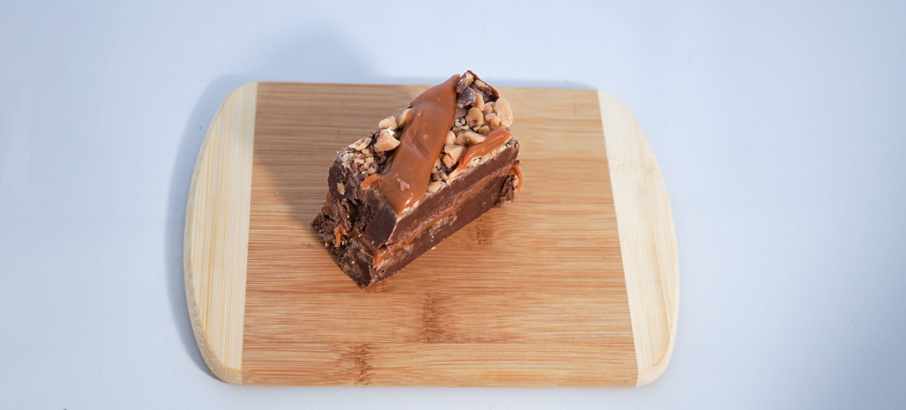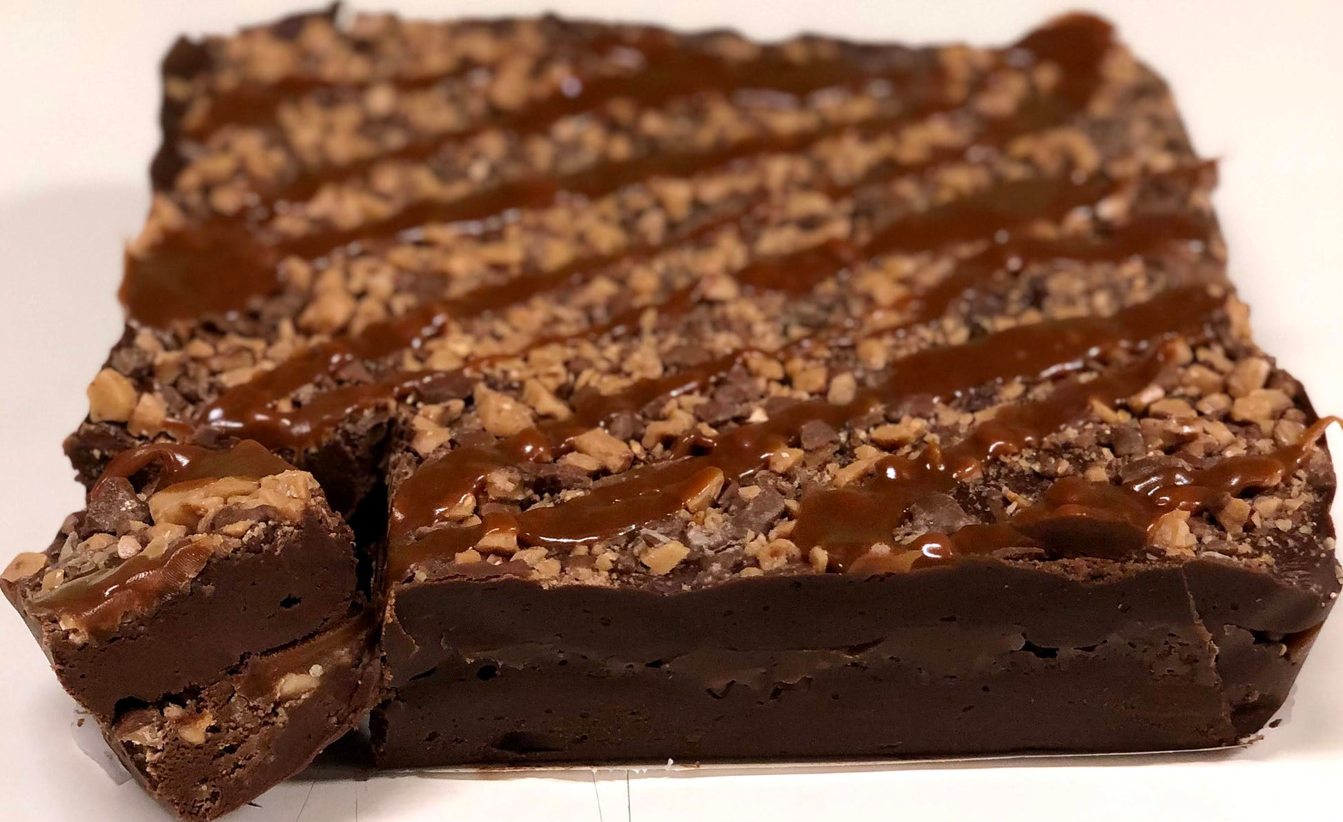 Get it while you can, this one sells quick. Dark chocolate fudge with Heath English Toffee and caramel.