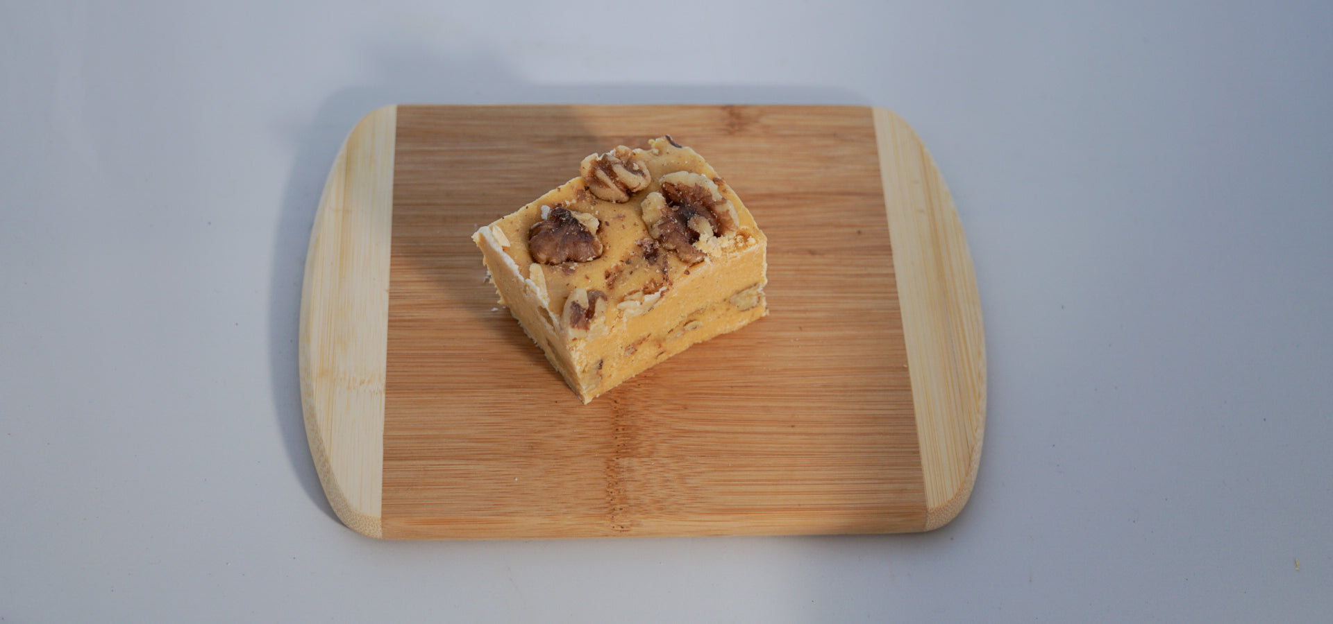 A real taste of fall. Pumpkin fudge with English walnuts.