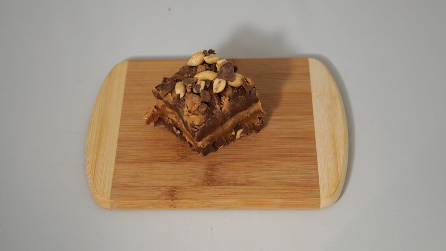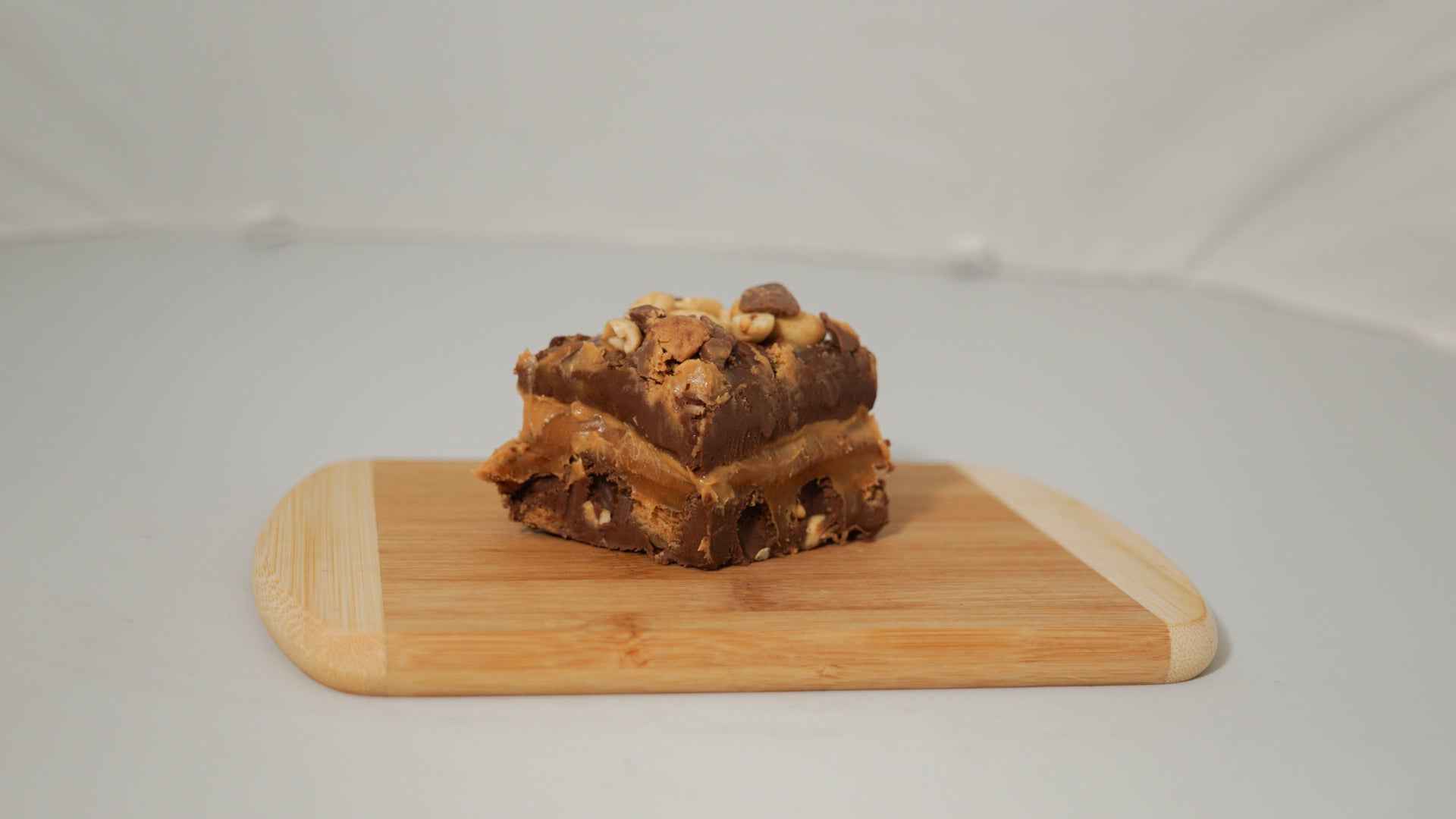 Our fudge-maker's absolute favorite! Based on a popular candy bar, this fudge is a chocolate base with caramel, PB straight from the jar, reese's cups, and peanuts! This is a must-try!